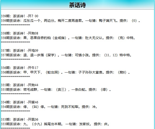 | 兔 | 玉帝、东宫、小姐、东宫、兰花 | 龙 | 皇帝、状元、皇帝、上帝、梨花 | 蛇 | 宫女、才人、美女、太子、竹花 |